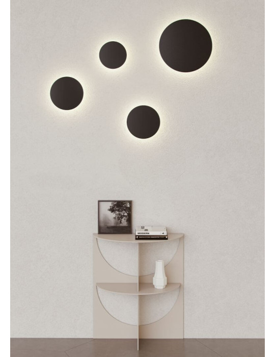 Aplique redondo que cuenta con un haz de luz de 360º direccionado hacia la pared que proporciona un estratégico diseño lumínico.