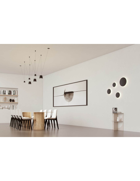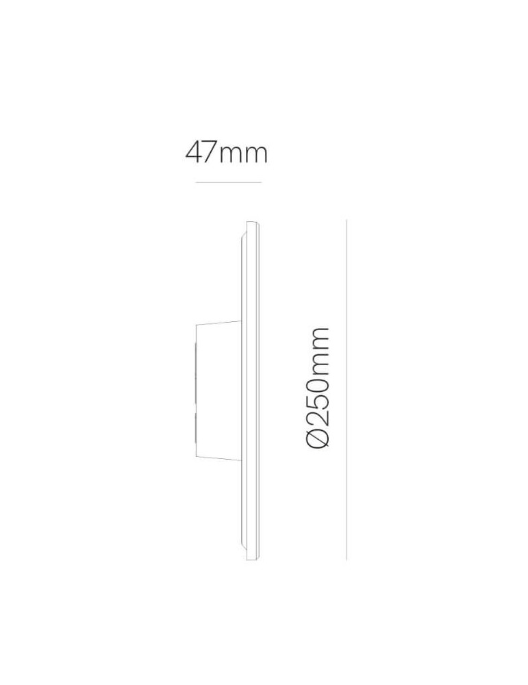 Aplique redondo que cuenta con un haz de luz de 360º direccionado hacia la pared que proporciona un estratégico diseño lumínico.