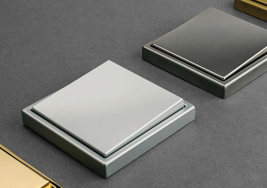 Optar por los acabados metálicos en la serie Jung LS 990 significa elegir productos que no solo son funcionales, sino también una declaración de estilo. Los acabados metálicos, como el acero, el aluminio, el latón, la antracita y el cobre, ofrecen un brillo y un tacto que elevan la percepción de la calidad y el diseño de un hogar.