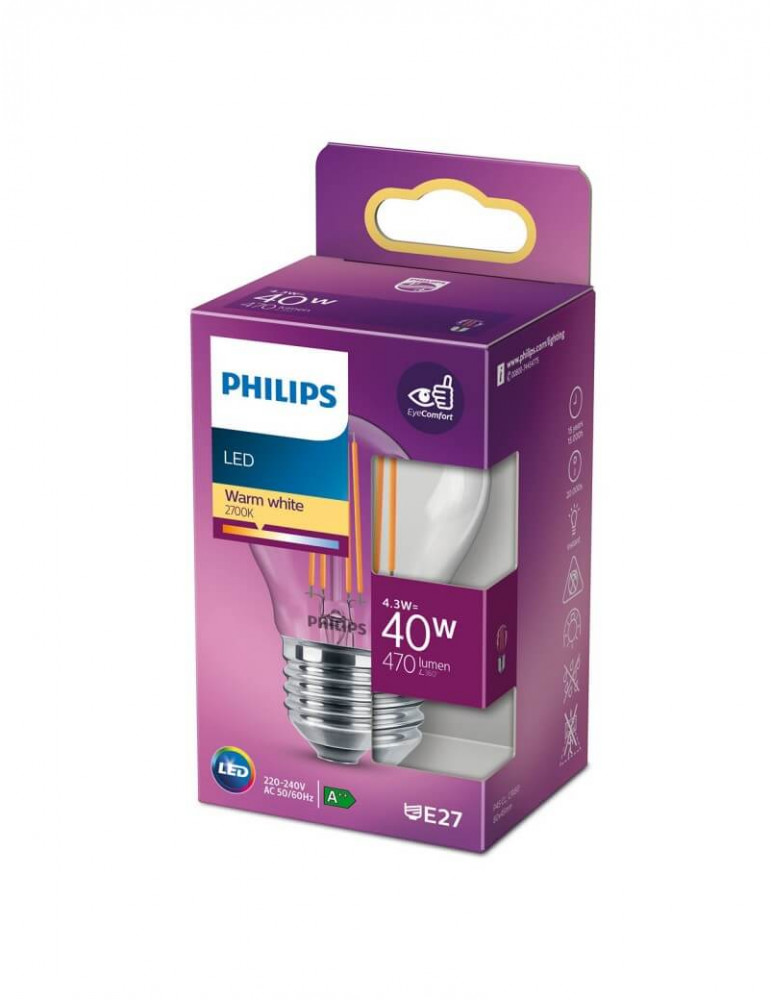 Esférica Led E27 Philips 4.3 w ( 40w ) 470 Lm. 2.700ºK