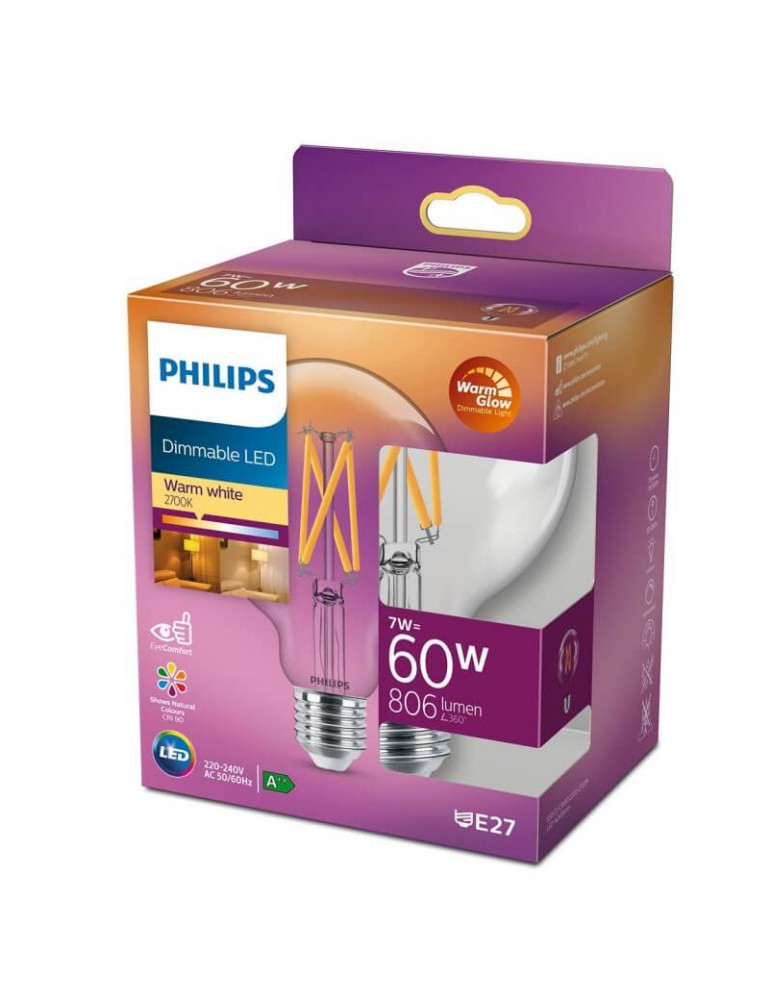 Globo 93 Led E27 Philips Dimm. 7 w ( 60w ) 806 Lm. 2.200ºK /2.700ºK
