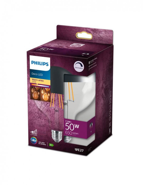 Globo 120 Led E27 Philips 7.2 w ( 50w ) 650 Lm. 2.700ºK Cúpula