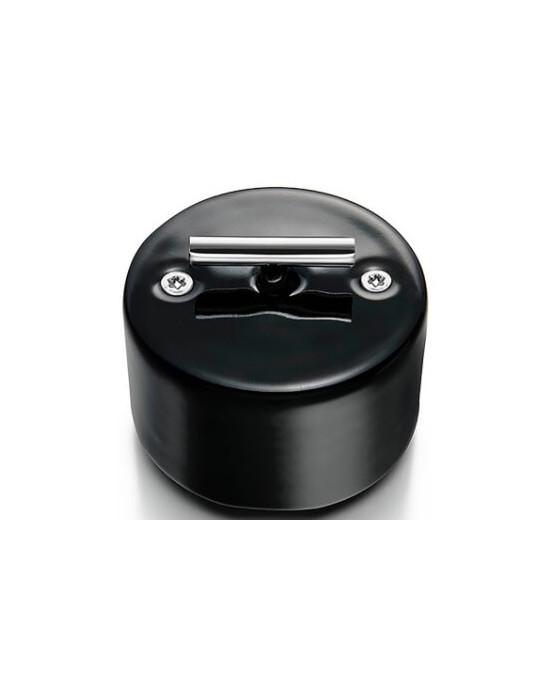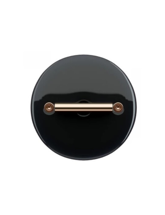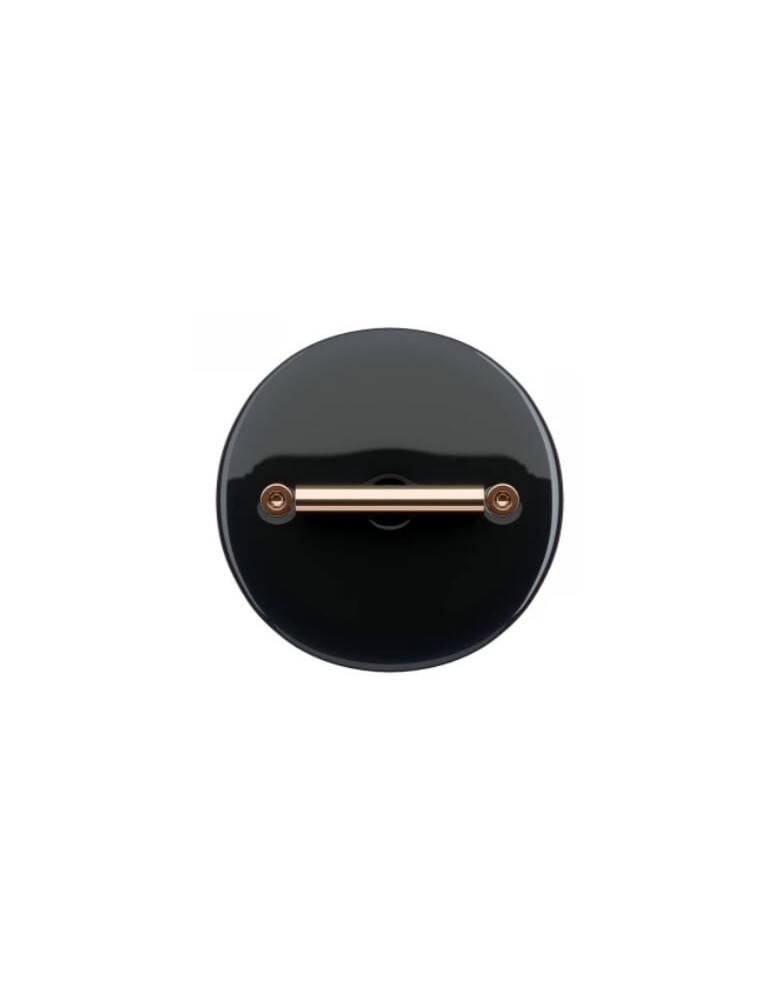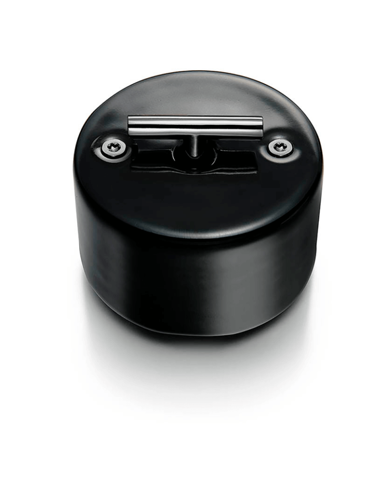 DO se inspira en los tradicionales interruptores rotativos, con un diseño minimalista de alta integración en cualquier ambiente. En porcelana negra, con los diferentes acabados de sus manecillas y tornillos.