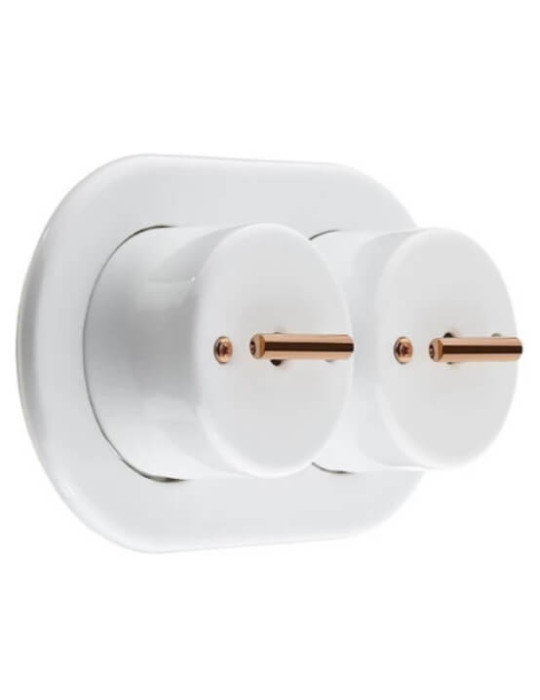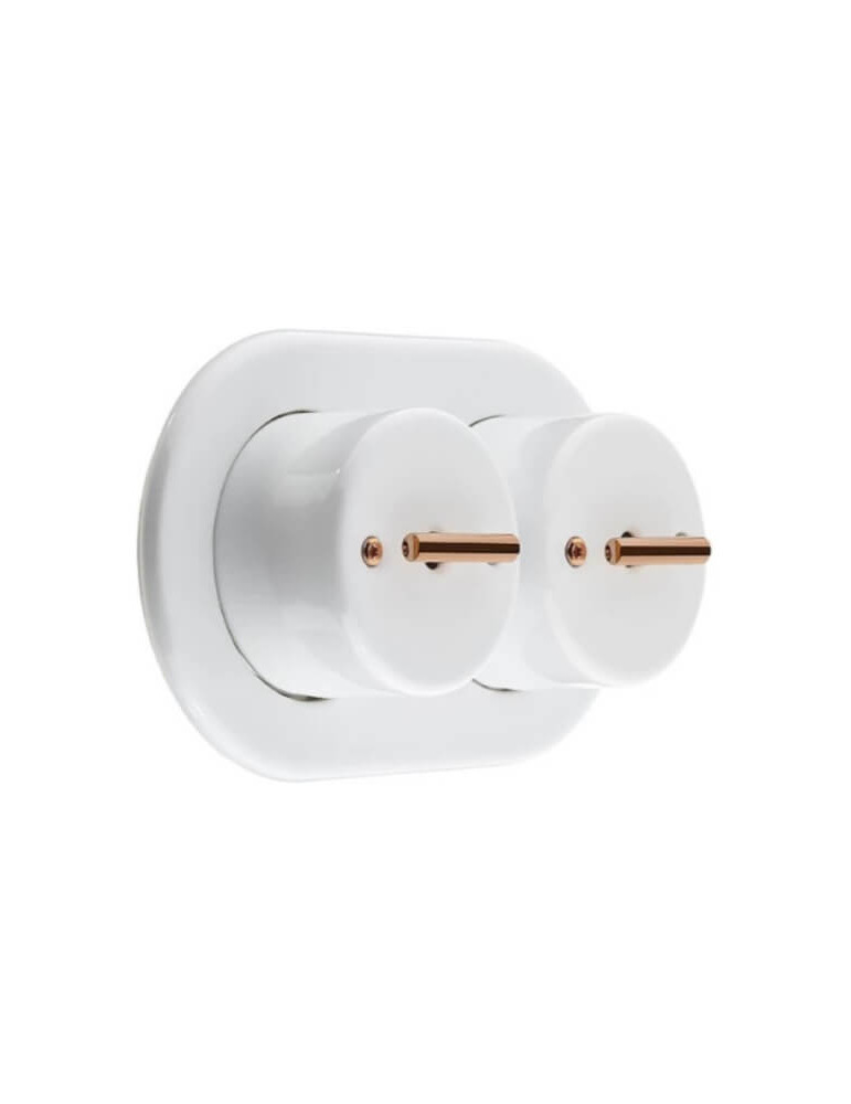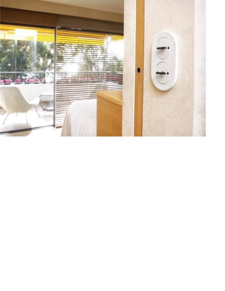DO LOW se inspira en los tradicionales interruptores rotativos, con un diseño minimalista de alta integración en cualquier ambiente. En porcelana blanca, con los diferentes acabados de sus manecillas y tornillos.