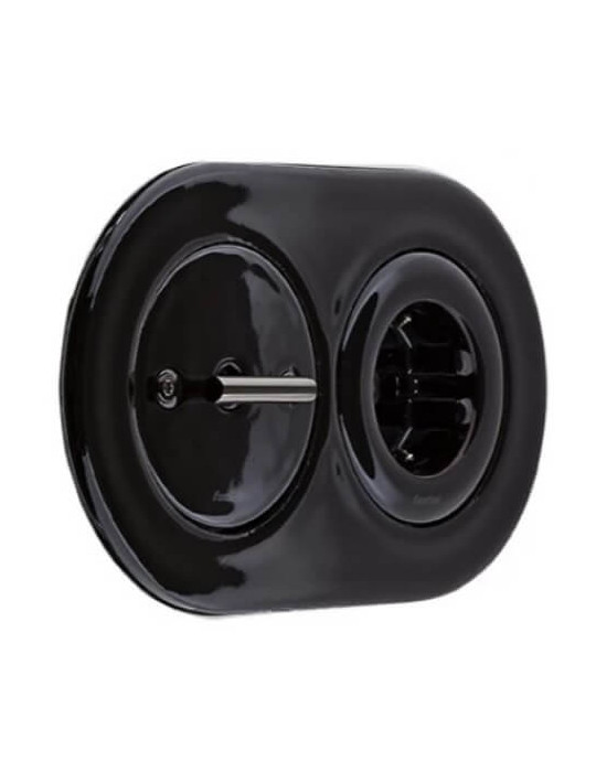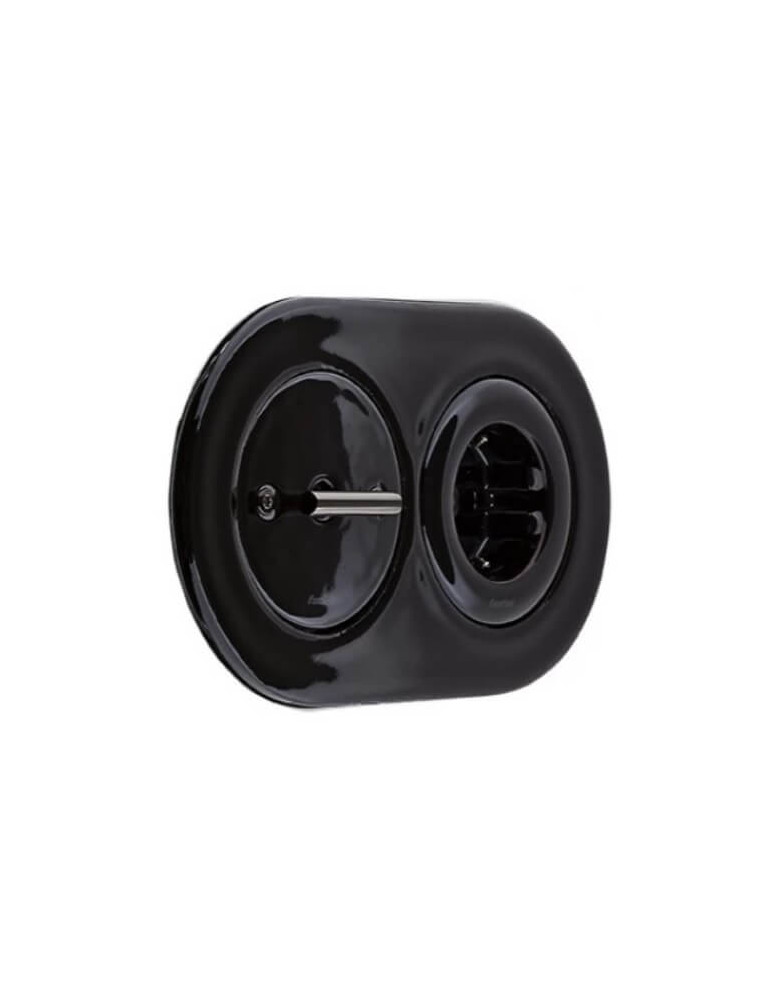 DO LOW se inspira en los tradicionales interruptores rotativos, con un diseño minimalista de alta integración en cualquier ambiente. En porcelana negra, con los diferentes acabados de sus manecillas y tornillos.