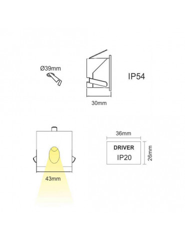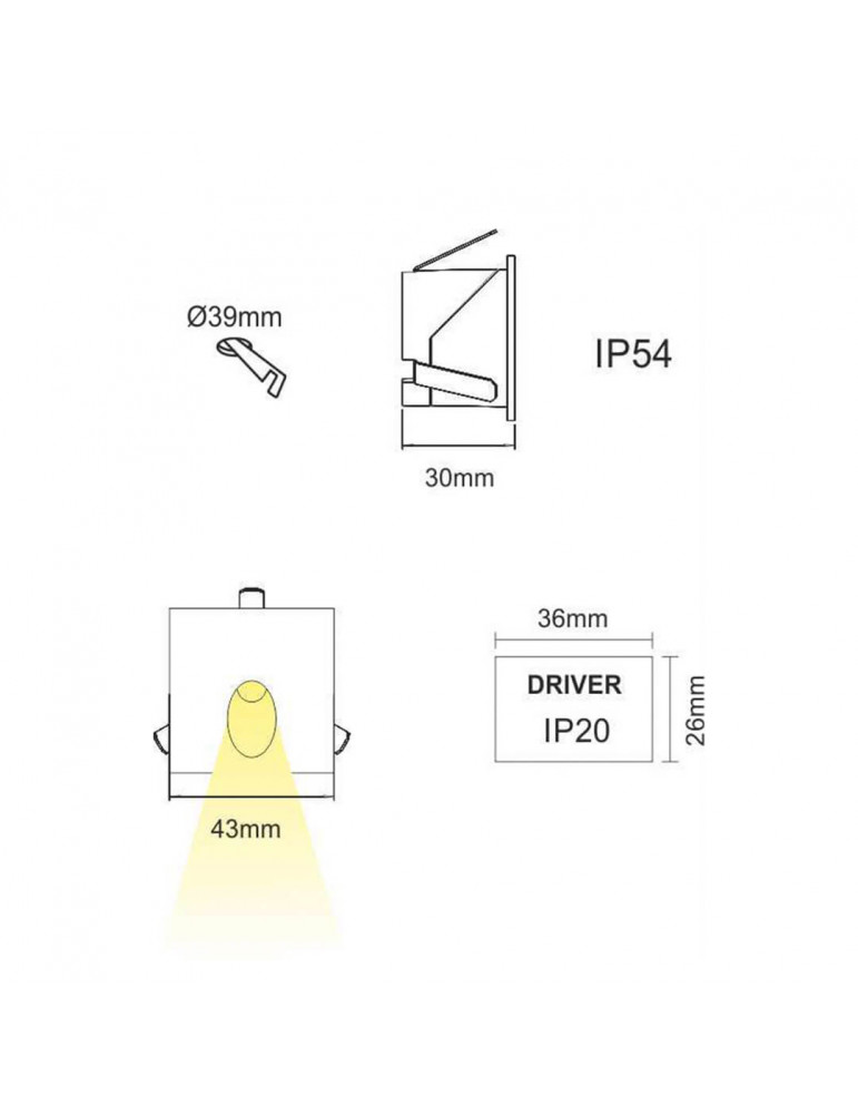 LUKY EMP.PARED 2 W IP.54 90 Lm. Ct.Ø39 mm