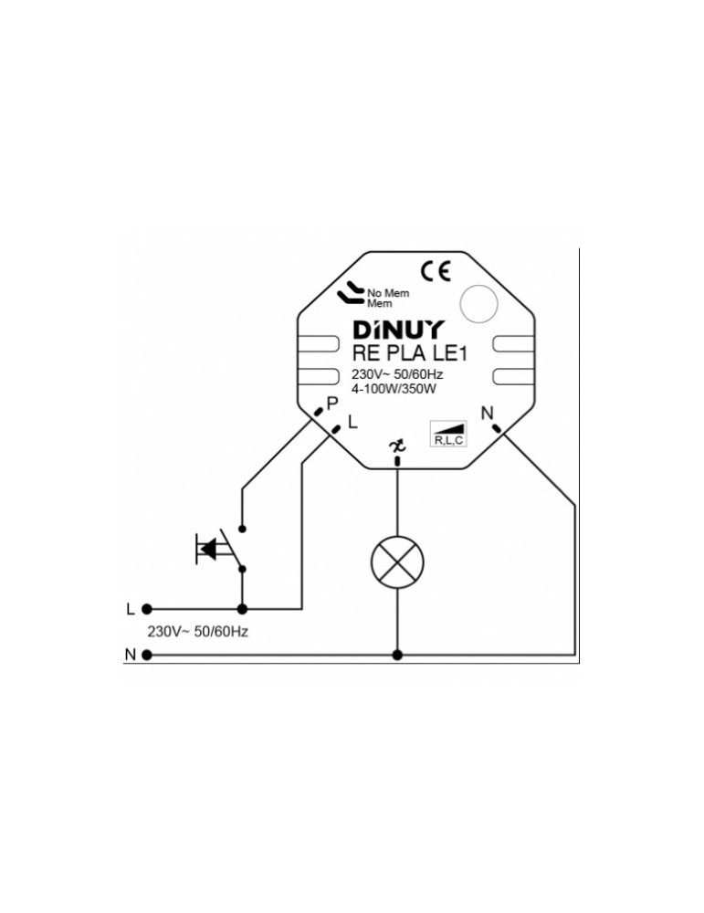 Regulador DINUY en formato pastilla, especialmente desarrollado para lamparas de LED regulables en 3 hilos. Compatible con 3 tipos de regulación. "LED 1" lamparas led a 230v.regulables principio de fase. "LED 2" lamparas led regulables a 230v. final de fase y lamparas led regulables a 12v. con transformador electrónico. Control mediante pulsadores convencionales.