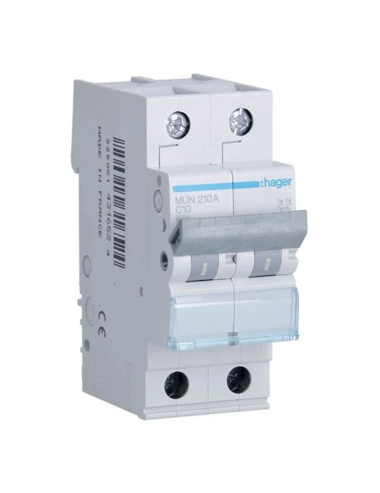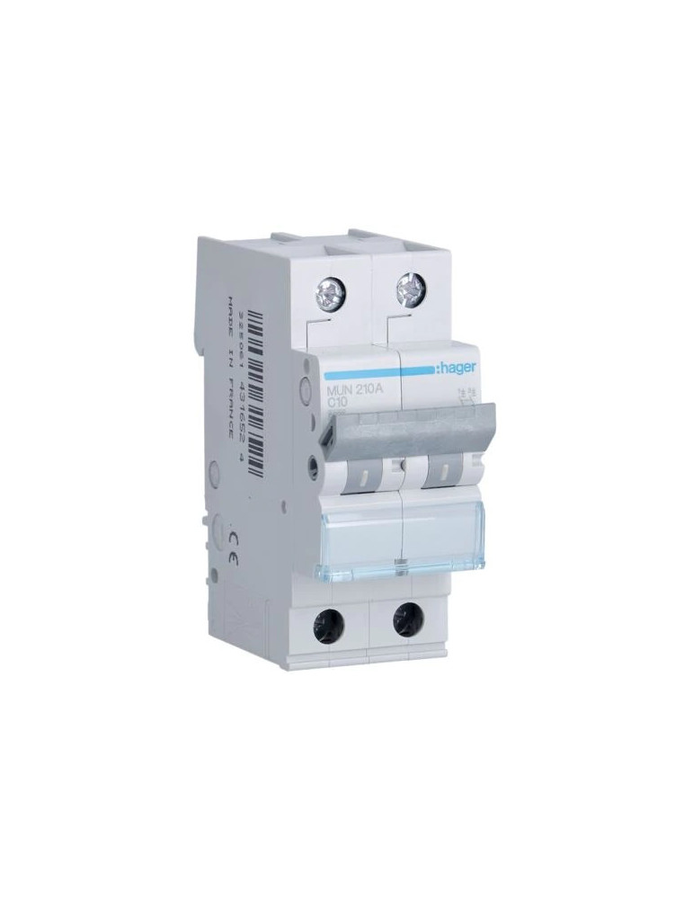 Interruptor automático magnetotérmico, serie MU. Gama residencial, maneta gris. De 2 polos, curva C, 6 KA y de 10 a. a 40 a..
