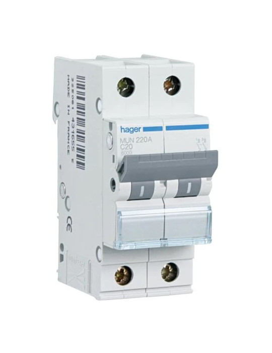 Interruptor automático magnetotérmico, serie MU. Gama residencial, maneta gris. De 2 polos, curva C, 6 KA y de 10 a. a 40 a..