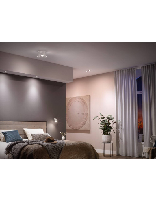 Bombilla Hue GU10 regulables en los diferentes tonos de blanco, disfrutaremos de una iluminación inteligente en cualquier lámpara, consiguiendo diferentes ambientes. Se puede encender y apagar a través de bluetooth o con el puente Bridge hasta 50 bombillas.