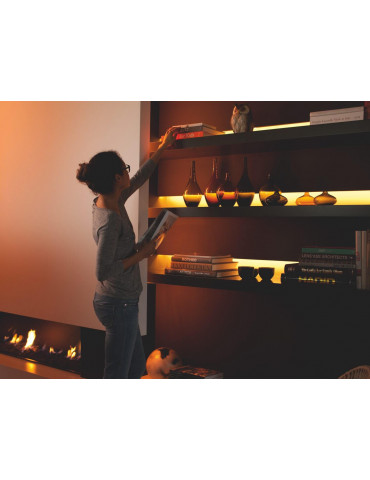 Tira de led ampliación RGB regulable colores, disfrutaremos de una iluminación inteligente en cualquier lugar, consiguiendo diferentes ambientes por sus 16 millones de colores, incluyendo todos los tonos de blanco. Se puede encender y apagar a través de bluetooth o con el puente Bridge.