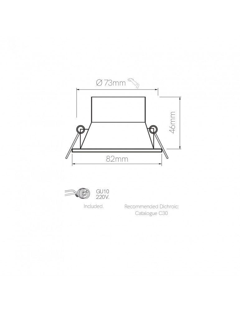Luk S IP65 Beneito-Faure Ext.82x82 mm. Cut.Ø73 mm. GU10 no incl.