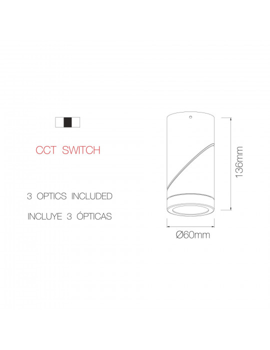 Plus es un foco de Led decorativo de interior con 8W de potencia y rtecnología Switch que permite cambiar la temperatura de color de 2700k, 3000k y 4000k.