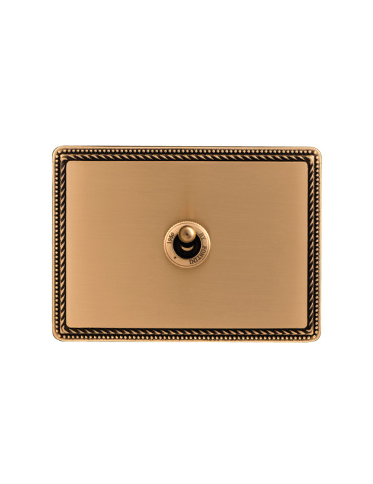 Interruptor 1950 patiné manecilla, la reedición de un clásico de Fontini. La 1950 se crea con carácter conmemorativo para celebrar el 60 aniversario de FONTINI. Glamour, tradición y sofisticación caracterizan la colección.