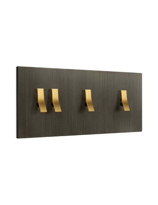 Interruptor Font Bridge tonalidad aluminio cepillado negro manecilla patiné. La innovadora tecla que parece flotar sobre la placa es el elemento distintivo de esta colección con líneas escultóricas y un tacto de sus materiales nobles. Una joya de pared.