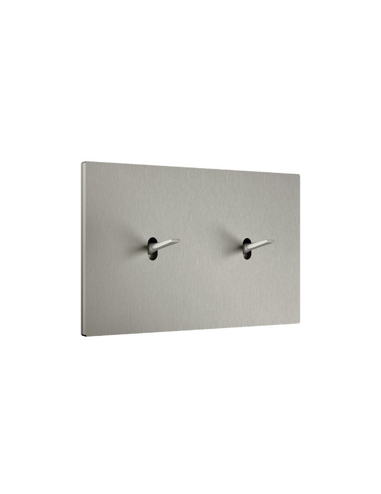 Interruptor Font 5.1 tonalidad acero inox cepillado y manecilla gris. La innovadora tecla que parece flotar sobre la placa es el elemento distintivo de esta colección con líneas escultóricas y un tacto de sus materiales nobles. Una joya de pared.
