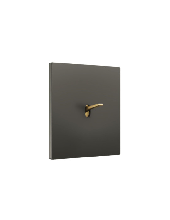 Interruptor Font 5.1 tonalidad aluminio negro manecilla patiné. La innovadora tecla que parece flotar sobre la placa es el elemento distintivo de esta colección con líneas escultóricas y un tacto de sus materiales nobles. Una joya de pared.