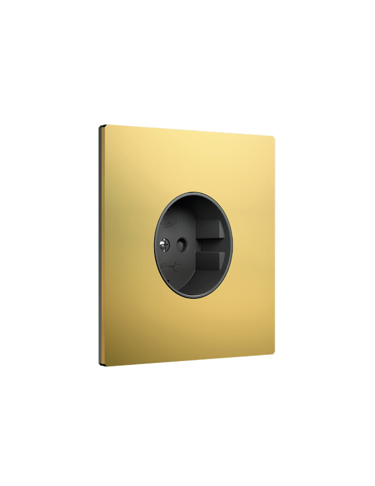 Enchufe Font 5.1 tonalidad latón dorado. Una colección de líneas escultóricas y un tacto de sus materiales nobles. Una joya de pared.