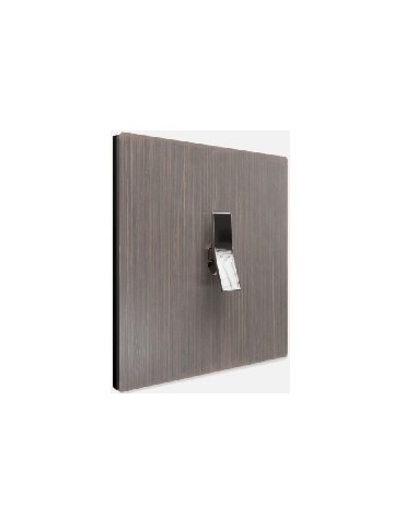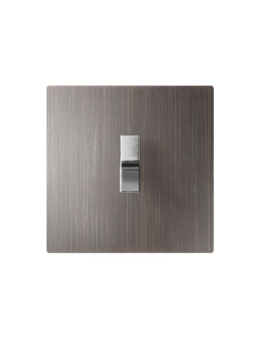 Interruptor Font Bridge tonalidad Latón Gris Cepillado. y manecilla Níquel Mate. La innovadora tecla que parece flotar sobre la placa es el elemento distintivo de esta colección con líneas escultóricas y un tacto de sus materiales nobles. Una joya de pared.