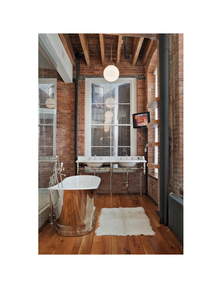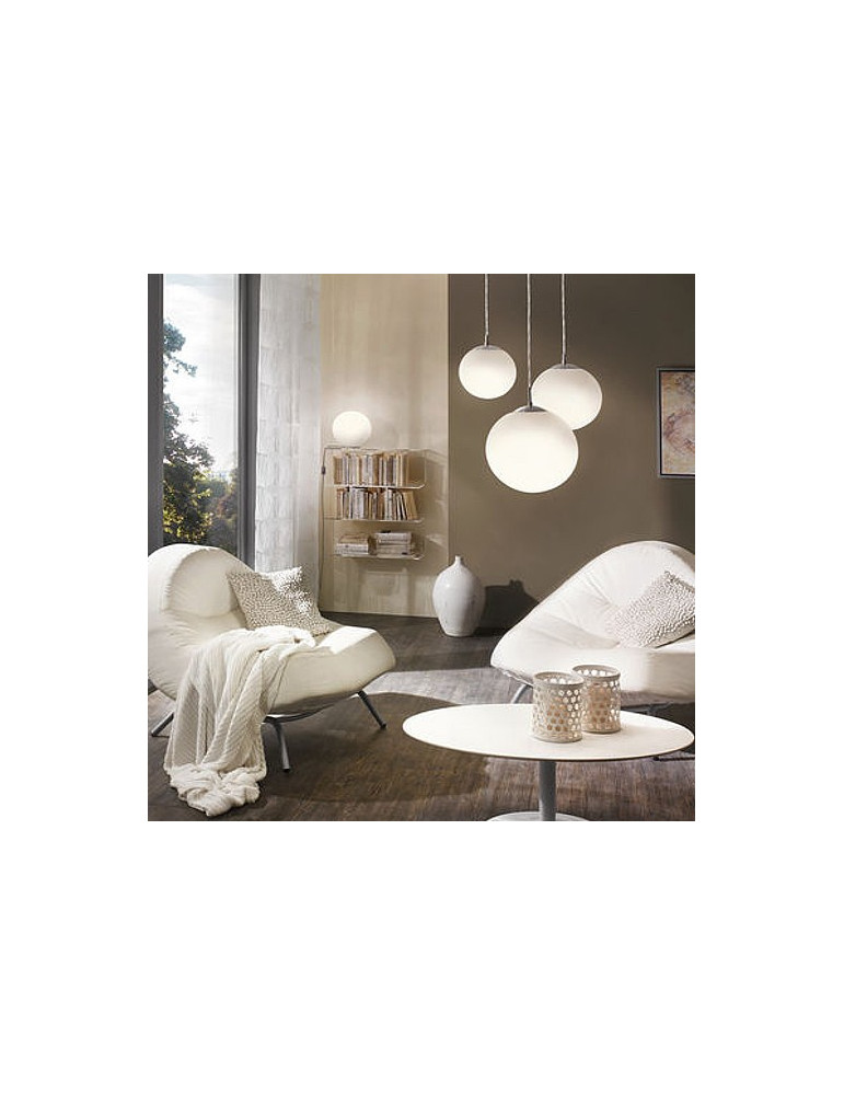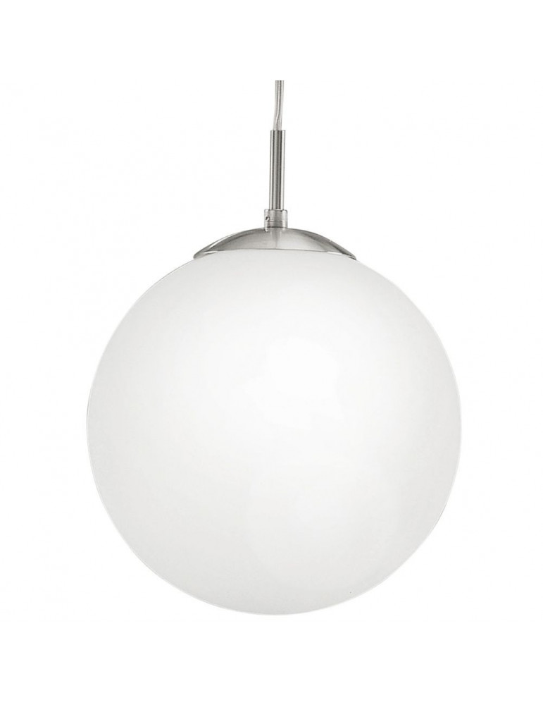 Colgante de cristal de 30cm con suspensión en acero mate y vidrio opalino.