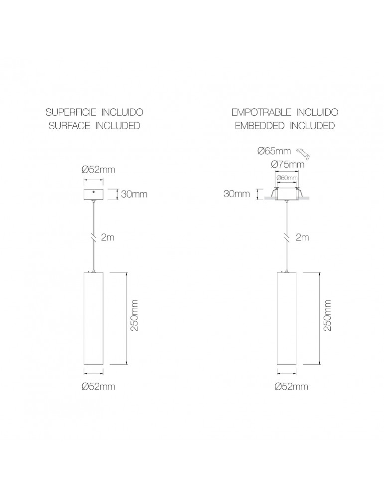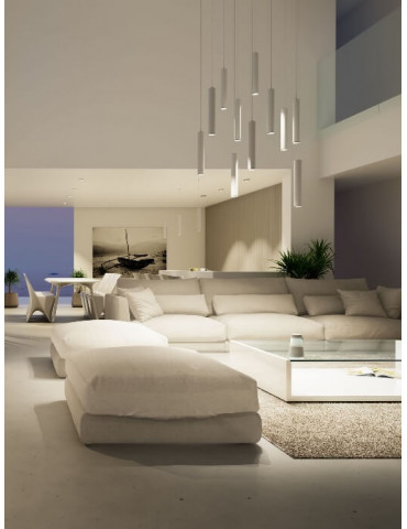 ATMOS es un foco Led decorativo en suspensión para interiores para bombilla GU10. Extrusionado en aluminio con florón de empotrar y de superficie.