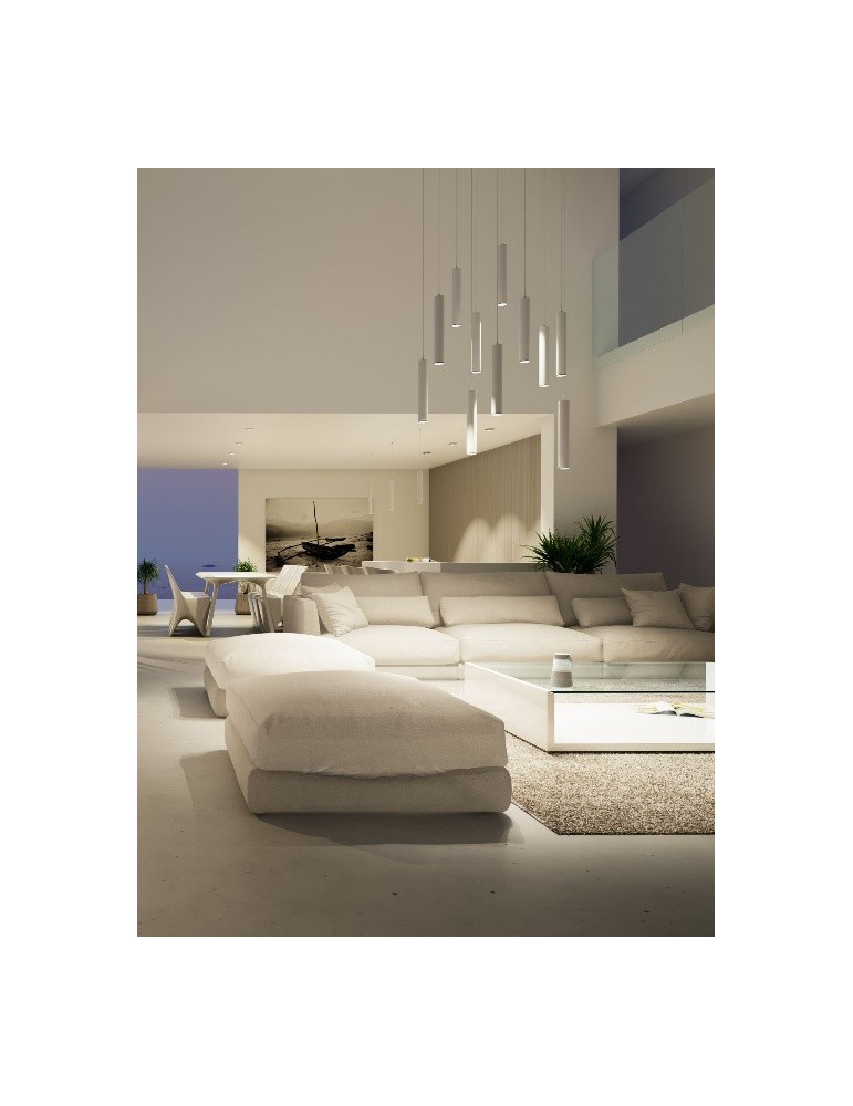 ATMOS es un foco Led decorativo en suspensión para interiores de 10W de potencia con tecnología Switch que permite regular la temperatura de color. Extrusionado en aluminio con florón de empotrar y de superficie.