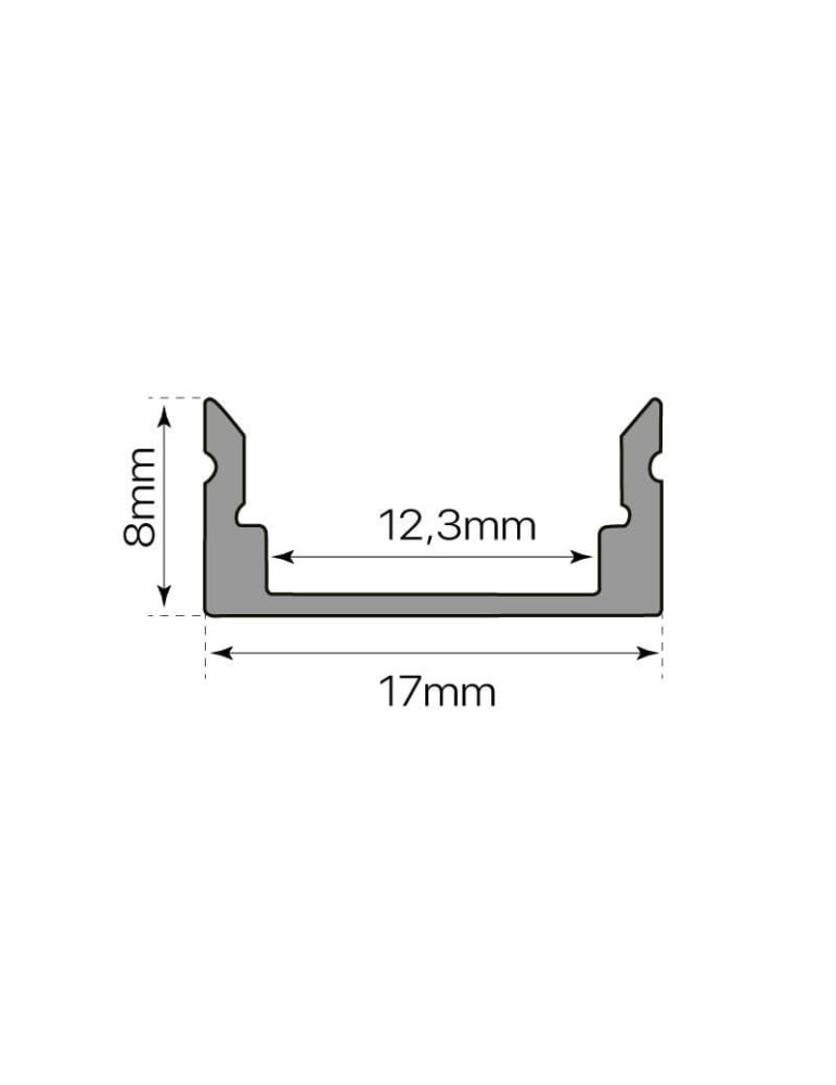 Perfil Alum. Sup. 17 X 8 mm Difusor + Grapas + Tapas 1 mt.