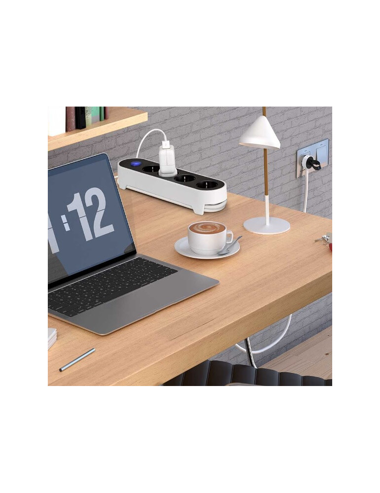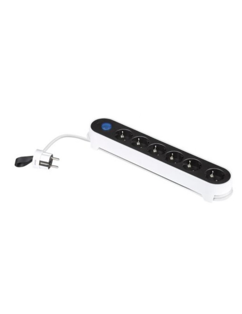 Base múltiple premium con 6 tomas de 16 A, acabado bicolor, interruptor luminoso y clavija easy-pull.