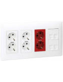 La rapidez, comodidad, seguridad y facilidad de instalación están aseguradas con la colección Cima 500. Tiene un sistema de enbornamiemto por corte 1Click en las bases de enchufe. Insertar, apretar y listo, sin necesidad de pelar, ni trenzar los cables. Las bases de enchufe pueden unirse entre sí, mediante el enlazador eléctrico. El sistema de bastidores individuales permite una instalación independiente del circuito eléctrico, voz y datos.