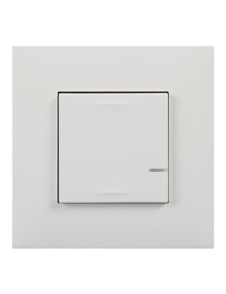 Interruptor inalámbrico blanco. Permite controlar interruptores, micromódulos y bases de corriente conectadas. Alimentación con pilas. Indicador Led de batería baja.