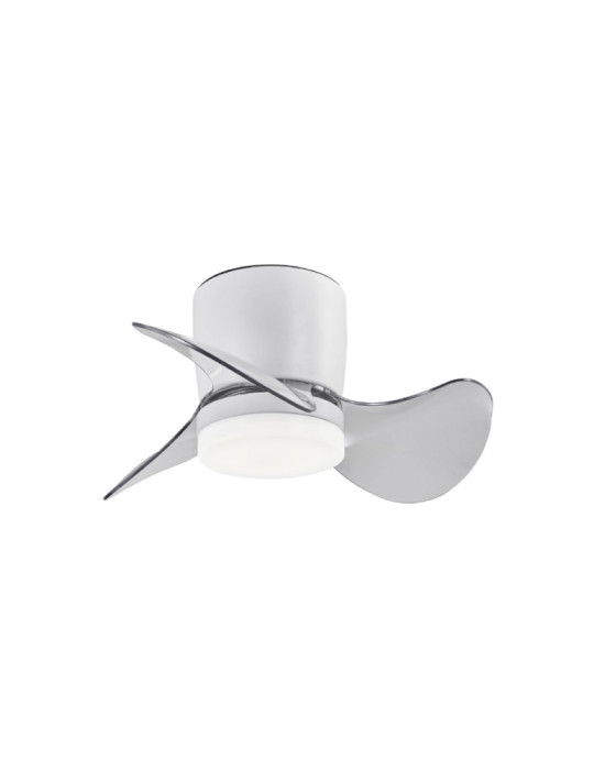 Ventilador de techo Jueric, modelo DUBAI color blanco con motor DC silencioso y 6 velocidades. Tiene tres aspas fabricadas con ABS en color transparente
