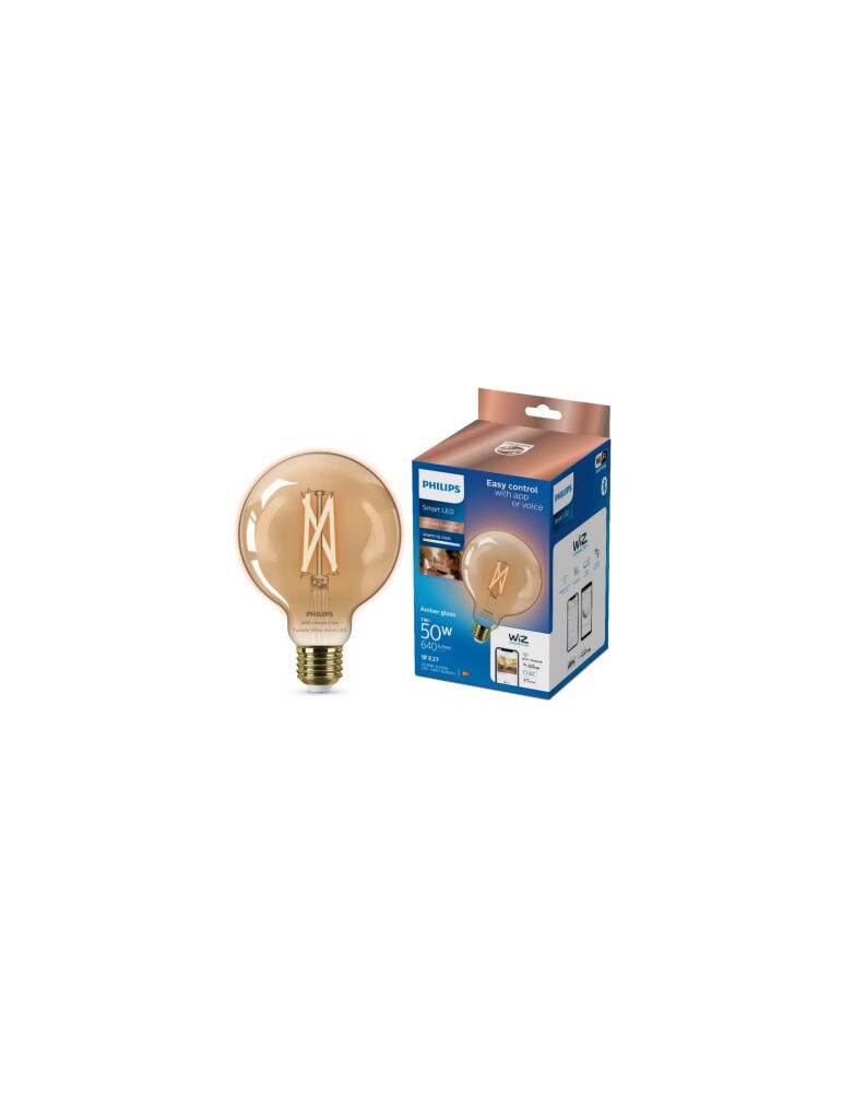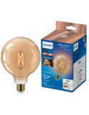 Esta bombilla Smart Led G95 con filamento ambar nos permite regular todas las tonalidades de blancos fríos a cálidos, dando un estilo vintage en las luminarias y focos empotrados estándar de tu hogar. Úsala con tu wifi para controlarla con la aplicación Wiz o con tu propia voz.